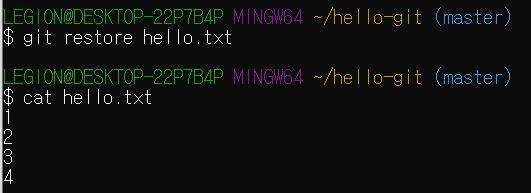 $ git restore hello.txt