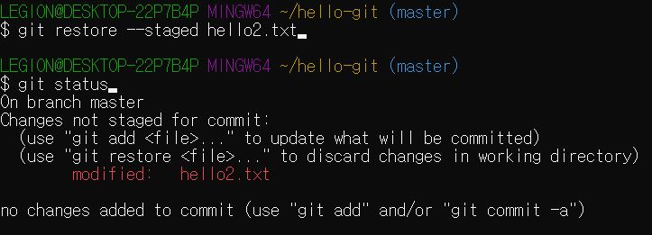 $ git restore --staged hello2.txt